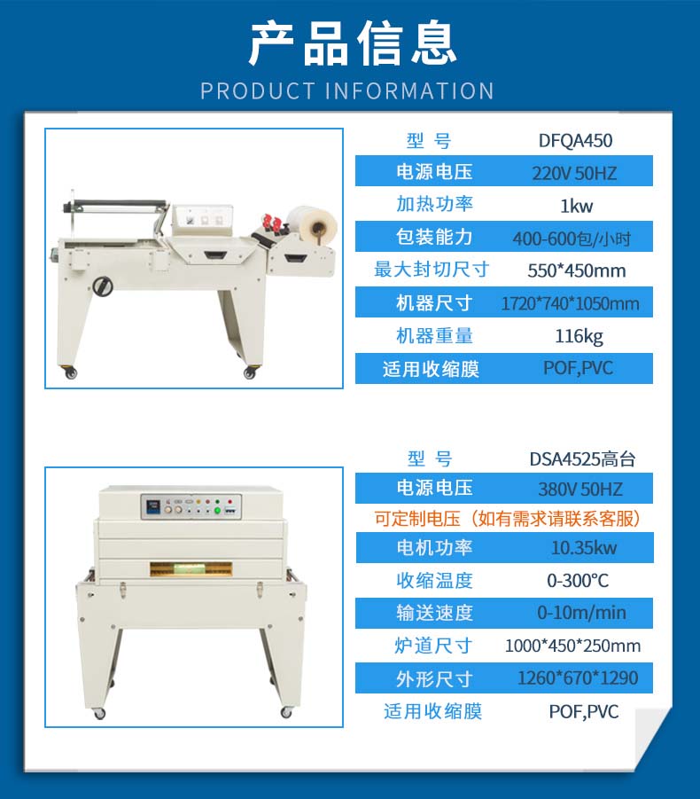 2、适用于PVC、POF、PP等各种收缩包装材料。