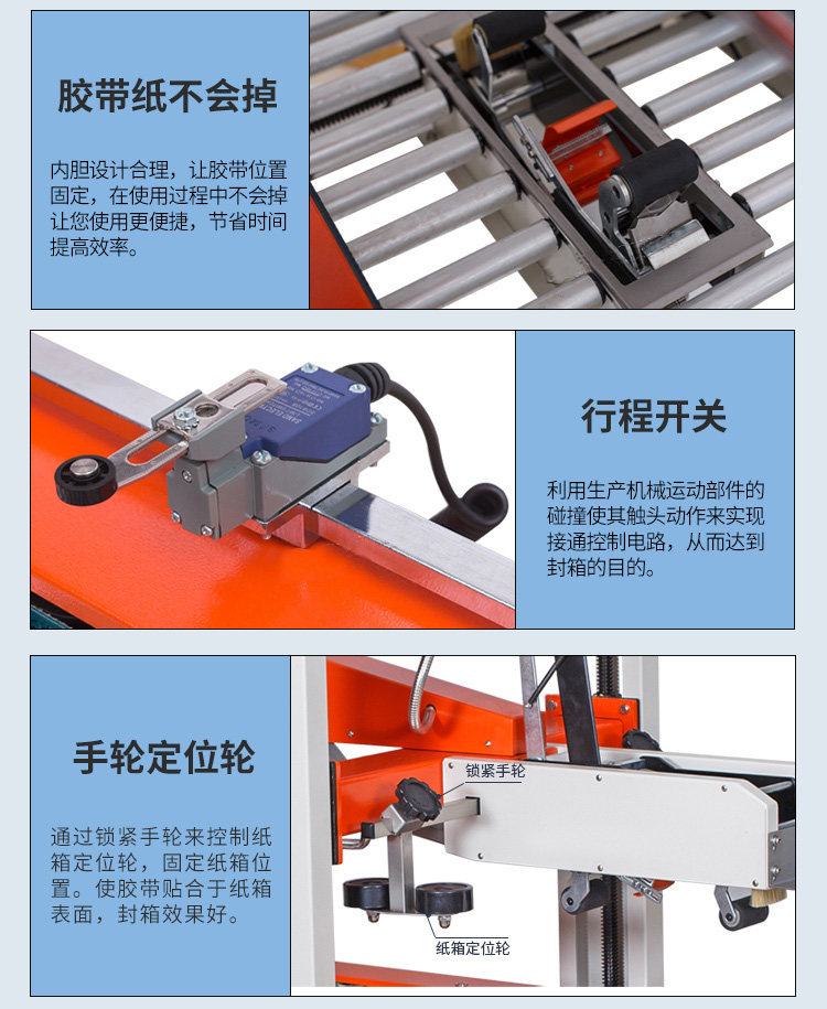 ◆适用于多种尺寸纸箱的折盖和胶带封箱