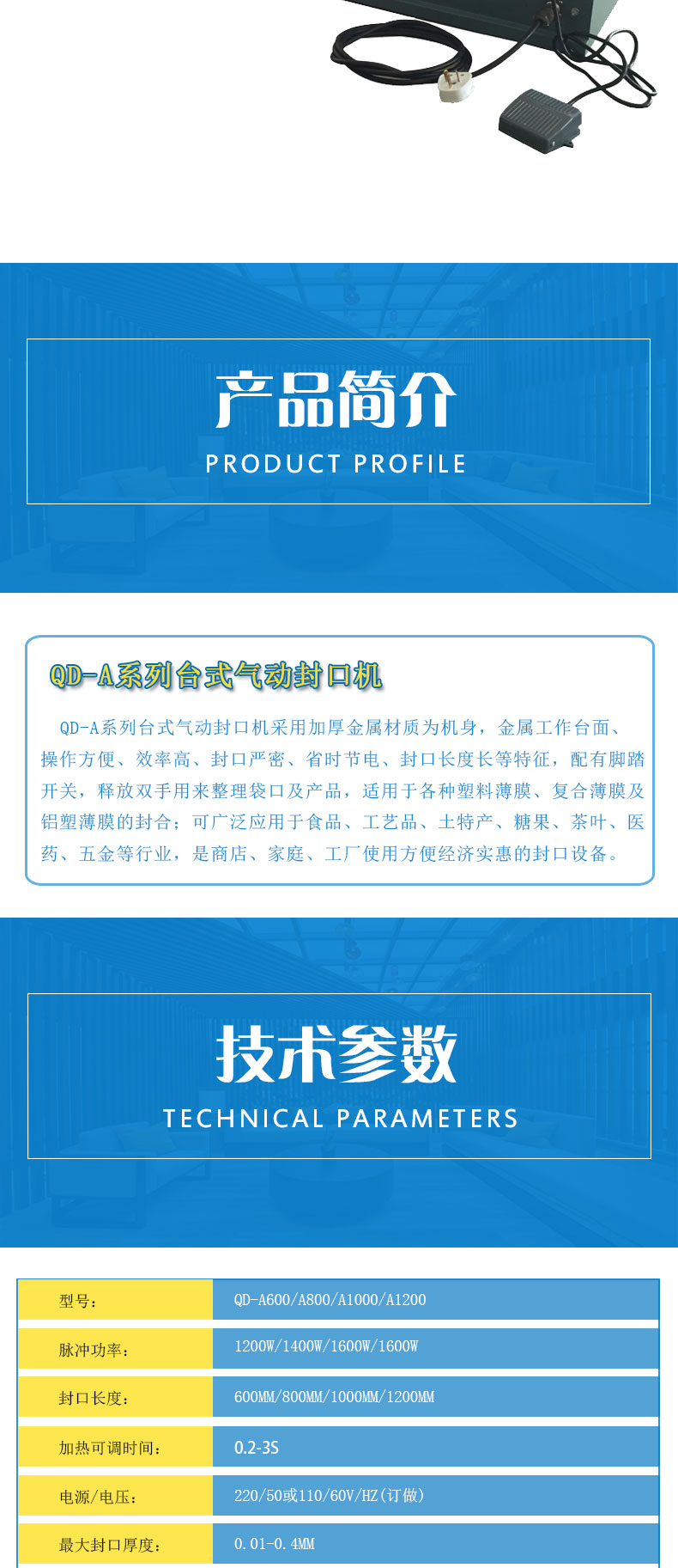 当前位置:首页》产品展示》QD-800A台式气动封口机