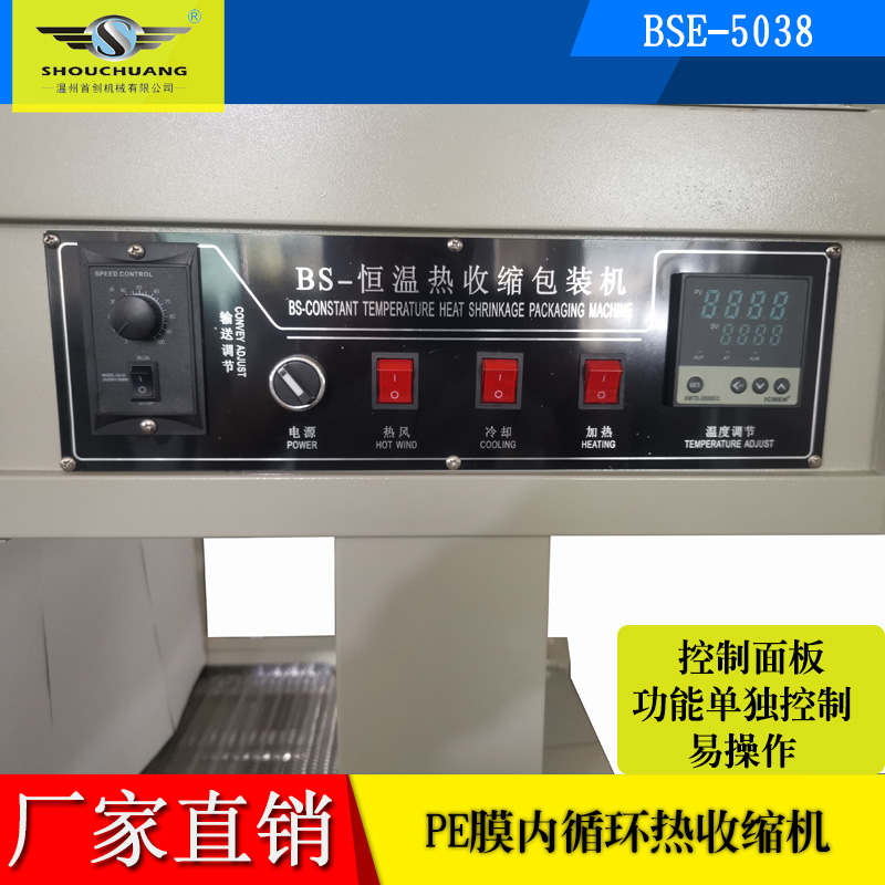 BS-60 series shrink tunnel adopts PE shrink film packaging design for large and heavy objects. Even the large packing object can be shrunken in a short time. The products after packing will be guaranteed in quality with clean appearance and compact in structure, which will be much easier for stacking and long-distance transportation. Variety of shrinking films, including PE, PVC, POF etc are applicable.