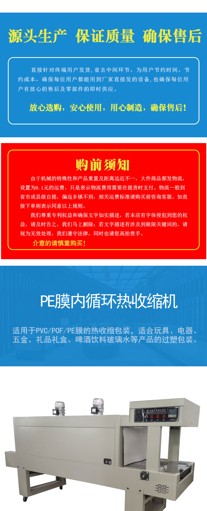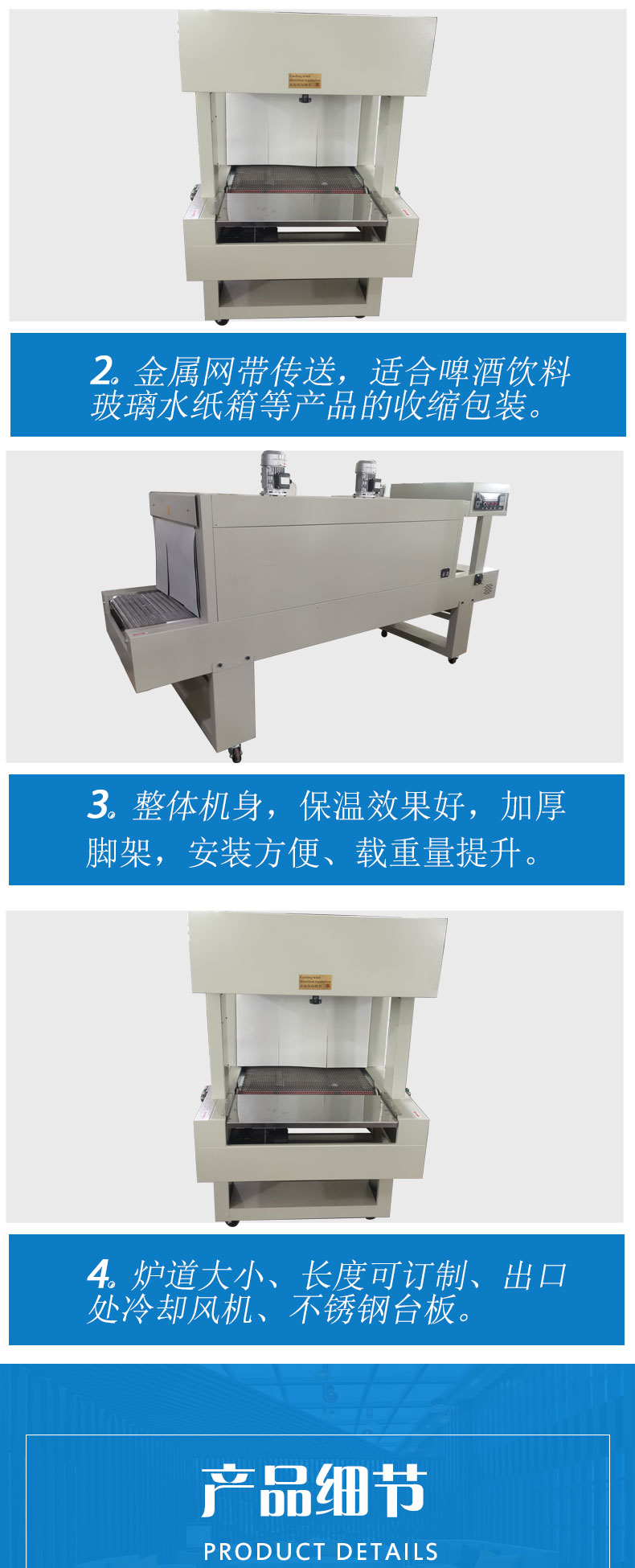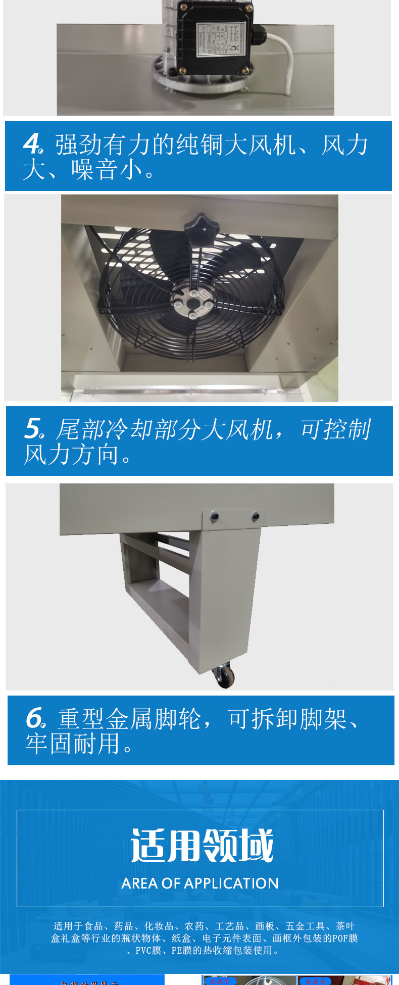 5. Adopt large cooling fan to cool and shape products quickly after shrinking.