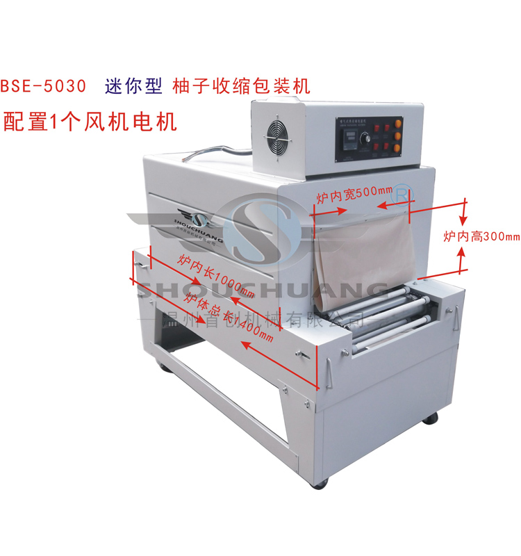 Product description:BSE grapefruit heat shrinkable packaging machine series is designed for grapefruit POF film shrink packaging design.After packaging the neat appearance, compact, dustproof, more beautiful.Technical features:1, depending on the type, with one to three high power wind motor, guarantee the circulation air volume is big, uniform temperature in the furnace chamber.2, stainless steel heater, heating up fast, long service life, using a digital intelligent temperature controller, temperature control precision.3, planetary gear reducer and high-power motor to ensure smooth delivery, no shaking.4, original high temperature resistant insulation curtain, light, also ensures that small items through sex, greatly reduce heat loss.5, trolley can be free to move at the bottom of the machine, equipped with base Angle bolts, can be used with different height form a complete set of production lines.6, a specially designed air duct system, to guarantee the appearance after packaging.7, internal furnace chamber plate with adjustable wind hole, local air volume can be adjusted according to the contract requirements.8, conveyor belt stuff, on both sides of the fence, prevent grapefruit rolling met insulation board.Scope of application:This machine is mainly used for shrinkage grapefruit in from 100 mm - 100 mm in diameter. A. Grapefruit shrinking machine technical features:1. According to the characteristics of the pomelo specifically designed to grapefruit film shrink packaging, ensure the grapefruit scrolling can have perfect contraction effect.2. Schneider ac contactor and high-power solid-state voltage regulator perfect combination with intelligent instrument control, make the system more accurate temperature, greatly extend the service life.3. According to the customer's production, my company specially produces three kinds of specifications of the grapefruit packaging machine, respectively is equipped with a high power fan motor (BSE - 5030), two high power fan motor (BSE - 6035) and three high power fan motor (BSE - 6035), to ensure strong enough wind to grapefruit a perfect packaging effect.4. Grapefruit packing machine USES the hot air circulation within the structure, use of intelligent temperature control instrument precision temperature control, with stainless steel metal heating tube, don't have to worry about the problem of how to change a hair heat pipe, but also guarantee the hot blast temperature, furnace heated evenly, shrinkage effect is good, long service life.5. Using solid roller conveyor, high temperature resistant asbestos roller coat, sets of silicone tube on both ends of the shaft, can bear the weight of large objects and not easy to wear and tear, silicone casing at the ends of the shaft at the same time make the conveyor belt from rolling forward process, make pomelo packaging, will not burn, contraction. Scope of application:This machine is mainly used for shrinkage grapefruit in from 100 mm - 100 mm in diameter.