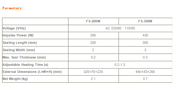FS-M series hand impulse sealer with middle cutter are equipped with middle cutter used to cut the bag after sealing, which are widely applied to seal all kinds of plastics films, compound films and aluminum-plastic film.