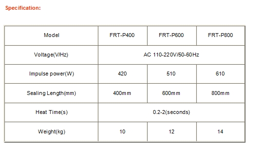 PFS Series facility pedal Impluse sealer is suitable for sealing all kinds of polyethylene and polyproplylene film recombined materials and aluminum-plastic film as well. They can be widely used for batch manufacturing of foods, medicine, hardware, they are used to seal equipment in super market, family and factory.