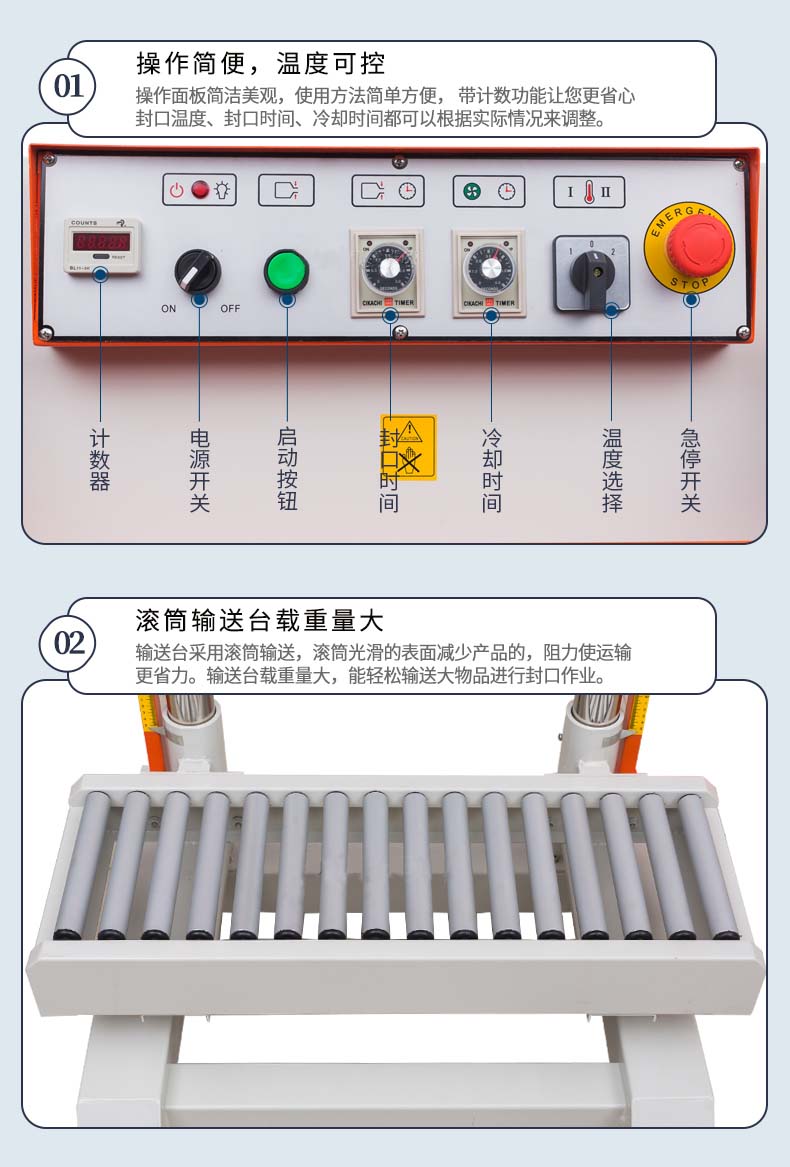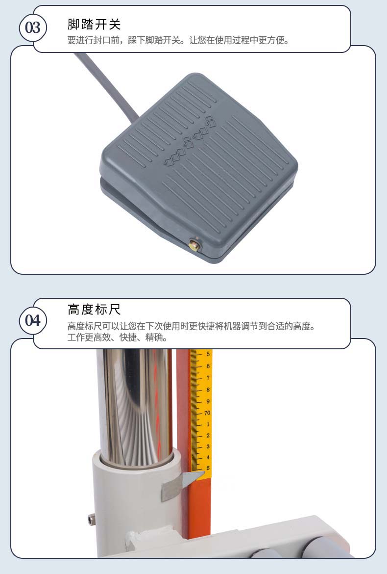 2. Adopts compressed air as power, characterized by adjustable sealing pressure and stable quality.